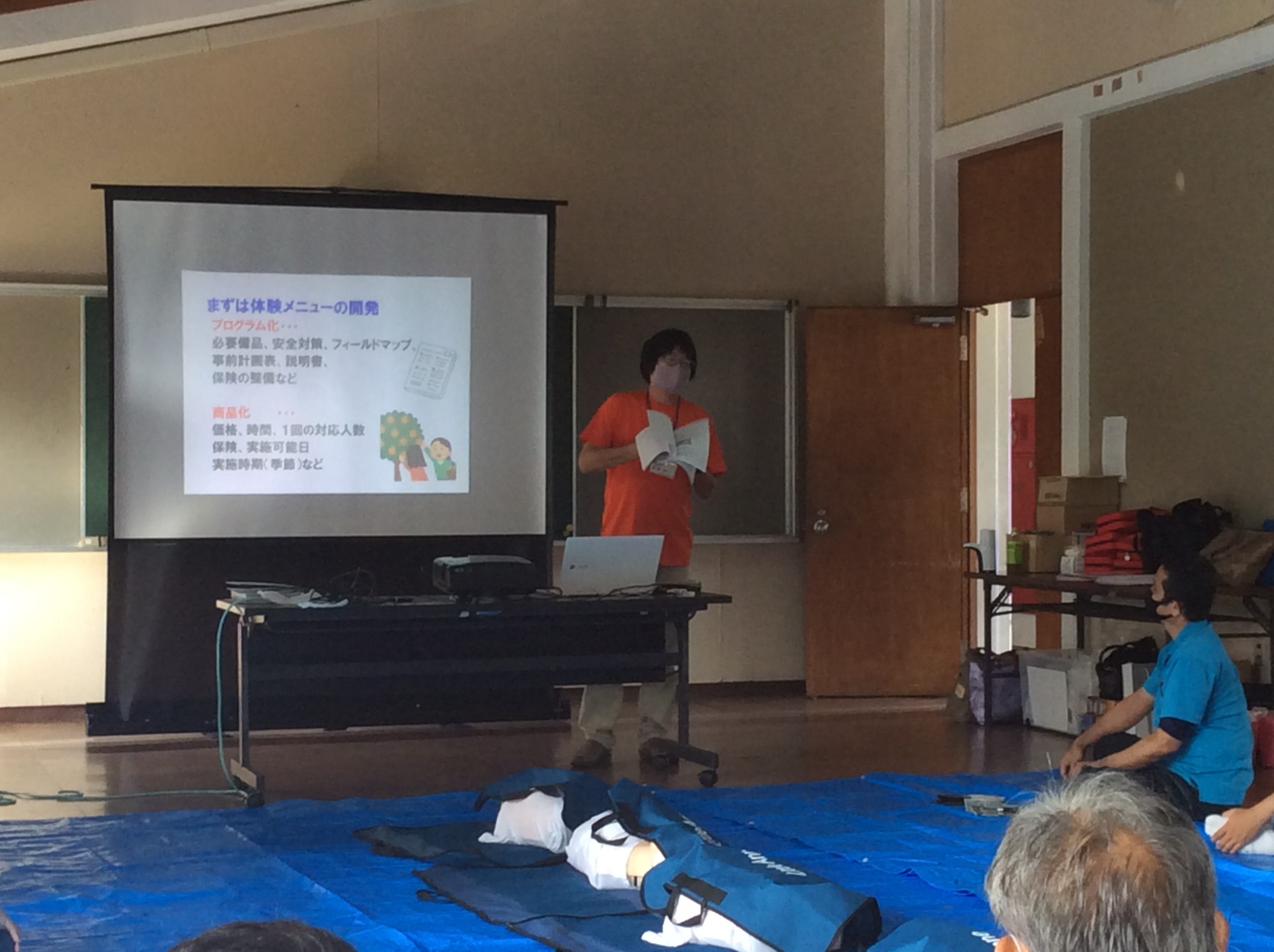 本講習会はグリーン・ツーリズム実践者育成のため、受け入れ時におけるお客様のケガや事故などに対応できる知識や技術を身につけるため開催しています。