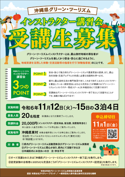 また、農山漁村体験・交流プログラムの作成に必要な知識や技術を習得できる「グリーン・ツーリズム講習会」を実施します。